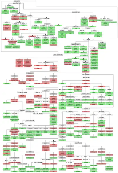 A computational phylogenetic analysis Jäger (2015) provided the following phylogeny of language families in Eurasia:[26]