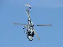 Many of the Lynx's components had been derived from earlier Westland helicopters such as the Scout and Wasp.[18] The Lynx has been substantially upgraded since entering service in the 1970s; improvements made to in-service aircraft have typically included strengthened airframes, new avionics and engines, improved rotor blades, and additional surveillance and communications systems.[25][44] Various subsystems from overseas suppliers have been incorporated into some Lynx variants; during a South Korean procurement, hulls produced in the United Kingdom were equipped with Korean-built systems, such as ISTAR, electro-optical, electronic warfare, fire-control systems,[47][48] flight control actuators,[49] and undercarriages.[50] A glass cockpit was adopted on the Super Lynx 300, featuring fully integrated flight and mission display systems, a variety of integrated display units including head-up displays, and dual controls; AgustaWestland has commented that the new cockpit reduces aircrew workload and increases aircraft effectiveness.[37][39] The head-up display installed could be replaced by a helmet-mounted sight system on customer demand.[46]