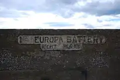 They were subsequently reorganised into a series of seven batteries. 1st Europa Battery was a three-gun battery situated on the coastal defence wall south of Woodford's Battery. 2nd Europa was also referred to as Point or Deadman's Hole Battery and was situated a little way to the east, behind a demi-bastion at the southern end of the wall. 3rd Europa or Lighthouse Battery was situated next to the Europa Point Lighthouse and mounted three guns.[2] The refurbished Harding's Battery was originally built on top of what was the 7th Europa Battery in 1859 and it was positioned between what became the 1st and 2nd Europa Batteries.[3] A Bofors 40 mm anti-aircraft gun was situated at Harding's during the Second World War.[2]