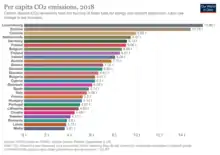 According to the Emissions Gap Report 2020 by the United Nations Environment Programme, meeting the Paris Agreement's 1.5 °C temperature increase target (with 66% probability) requires GtCO2e 34/59 = 57% emissions reduction globally from 2019 levels by 2030, therefore well above the 40% target of the European Green Deal.[25] This 57% emission reduction target at 2030 represents average global reductions, while advanced economies are expected to contribute more.[26]