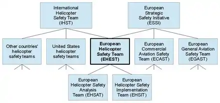 The European Helicopter Safety Team (EHEST) was a European aviation safety improvement initiative focusing on improving helicopter safety in Europe and worldwide. It was established in 2006 as part of the European Strategic Safety Initiative (ESSI) of the European Aviation Safety Agency (EASA). The goal of the European Helicopter Safety Team was to contribute to reducing the worldwide helicopter accident rate by 80% in the time-span 2006-2016, which was set as a goal by the International Helicopter Safety Team (IHST) in 2006.[2] Focusing on European helicopter operators and manufacturers, the European Helicopter Safety Team conducted helicopter accident analyses, provided technology potential studies, and published safety management and training documents.[3]