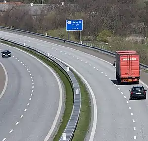 In Denmark the E45 is a motorway (speed limit 110 to 130 km/h or 70 to 80 mph) from the south of Frederikshavn along the east coast of Jutland to the Denmark–Germany border. The E45 has no other national number. It connects to the E39 and E20 motorways.