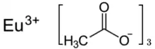 Europium(III) acetate is an inorganic salt of europium and acetic acid with the chemical formula of Eu(CH3COO)3. In this compound, europium exhibits the +3 oxidation state. It can exist in the anhydrous form, sesquihydrate[lower-alpha 1][1] and tetrahydrate.[2] Its hydrate molecule is a dimer.[3][4]