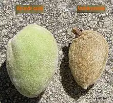 E. amygdali is considered a pest in most of its range, especially in northern Greek districts Thessaloniki and Chalkidiki because they insert their ovaries into almond seeds.[1][2]