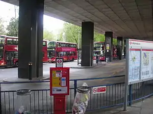 London Buses routes 18, 30, 59, 68, 73, 91, 168, 205, 253, 390 and night routes N5, N20, N73, N91, N205 and N253 serve the bus station.[2]