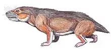 The clade was named in 1986 by James Allen Hopson and Herbert Richard Barghusen, the name meaning the "true Theriodontia". Within Hopson's system, the Eutheriodontia are the sister group of the Gorgonopsia within the Theriodontia.[1] A close relationship between therocephalians and cynodonts had been recognized for many years. In 2001 the Eutheriodontia were defined as the least inclusive clade including Mammalia and Bauria.[2] Even today, the taxon has a strong recognition among paleontologists and is regularly cited in several studies concerning therapsids.[3]