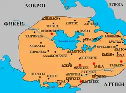 ![]() Ancient major settlements in Boeotia (Voiotia) | |