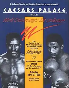 - Evander Holyfield and Carlos DeLeon will fight for the undisputed cruiserweight championship, Associated Press article, 1988-02-23 Retrieved on 2020-02-03
