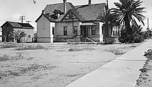 The Evans House was built in 1893 by Doctor John M. Evans in Phoenix, Arizona. The 1+1⁄2-story brick residence has an unusual onion dome over the front entrance, rising from the semicircular front porch. The ground floor has seven rooms and was used as a residence, while the upper floor served as Dr. Evans' office and was reached by a separate exterior stairway.[2]