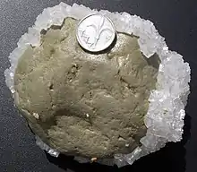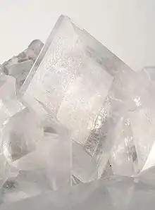 An evaporite (/ɪˈvæpəˌraɪt/) is a water-soluble sedimentary mineral deposit that results from concentration and crystallization by evaporation from an aqueous solution.[1] There are two types of evaporite deposits: marine, which can also be described as ocean deposits, and non-marine, which are found in standing bodies of water such as lakes. Evaporites are considered sedimentary rocks and are formed by chemical sediments.