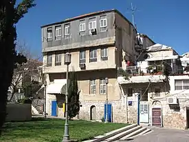 Unlike its sister project, Mishkenot Yisrael, which featured standard two-room dwellings for a mainly low-income residential base, Even Yisrael featured both two-room dwellings and a handful of three- to four-room dwellings for families of means.[15] A three-story house on the north side of the courtyard was the home of the widow Rebecca Levy, an American millionairess.[16] It has been called "Jerusalem's first skyscraper".[16] The third floor of this house was covered with tin sheeting to protect its inhabitants from the cold.[17] Opposite the neighborhood, on the northern side of Jaffa Road, stood large gardens filled with plants and flowers.[5]