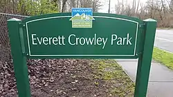 Prior to being a park, the area was known to be the Kerr Street garbage dump.[2] The Kerr Street garbage dump served as Vancouver's main landfill from 1944 to 1967.[4] The dump was closed in 1966, and the deposited waste was up to 49 metres in places.[4] Following 1967, the area was closed for 20 years until being re-introduced as Everett Crowley Park in 1987.[2] Dedication and opening of the park was promoted through petitioning and lobbying by local residents.[4] Eventually, the garbage dump was reforested by local and invasive species, although some efforts were made by the community. Since 2010, large areas of Himalayan Blackberry have been removed and replaced with several thousand trees planted by the Vancouver Park Board.[4] The park is named after Everett Crowley, who was the owner of Avalon Dairy, Vancouver's last independent dairy.[2] Everett Crowley served on Vancouver's Park Board as a Parks Commissioner from 1961 to 1966.[2]
