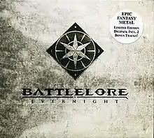 Evernight is the fourth studio album by the Finnish heavy metal band Battlelore, released in 2007. As previously, the songs are all based on J. R. R. Tolkien's Middle-earth. Overall the sound of the album was darker and denser than the band's earlier releases with a much thicker and heavier guitar sound. The album also was more consistent in sound with less variation between songs to present a more cohesive piece of work. In this album the band choose not to use names and direct references to Tolkien's legendarium to make the lyrics accessible to a broader audience.