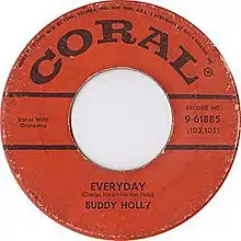 "Everyday" is a song written by Buddy Holly and Norman Petty, recorded by Buddy Holly and the Crickets on May 29, 1957, and released on September 20, 1957, as the B-side of "Peggy Sue", which went to three on the Billboard Top 100 chart in 1957. The song is ranked number 238 on Rolling Stone magazine's list of the "500 Greatest Songs of All Time".[2]