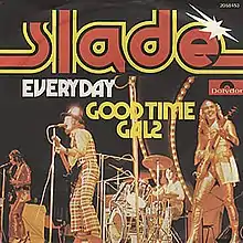 "Everyday" is a song by the British rock band Slade, released in 1974 as the second single from the band's fourth studio album Old New Borrowed and Blue. It was written by lead vocalist Noddy Holder, bassist Jim Lea and his wife Louise Lea (uncredited), and produced by Chas Chandler. It reached No. 3 in the UK, spending seven weeks on the chart.[1] The single was certified UK Silver by BPI in April 1974, only three days after its release.[2][3]