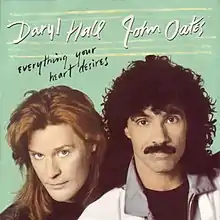 "Everything Your Heart Desires" is a song by the American duo Hall & Oates, released as the lead single from their thirteenth studio album, Ooh Yeah! (1988). The song peaked at number three in the United States. It was their sixteenth and last Billboard Hot 100 Top 10 song. The 45 version was later included on their greatest hits album Playlist: The Very Best of (2008) while the video mix was included on VH1 Behind the Music: The Daryl Hall and John Oates Collection (2002) and on the box set Do What You Want, Be What You Are: The Music of Daryl Hall & John Oates (2009).