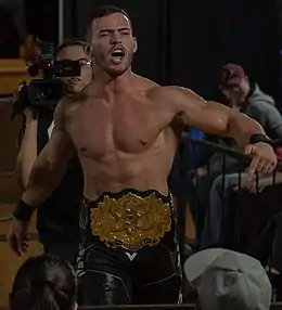 ![]() Austin Theory with the Evolve Championship in March 2019. | |||||||||||||||||||