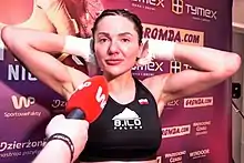 Ewa Brodnicka (born 7 June 1984) is a Polish female professional boxer who held the WBO female junior-lightweight title from 2018 to October 2020. At regional level she held the European female lightweight title from 2015 to 2016.[2] As of November 2019, she is ranked as the world’s fifth best active female junior-lightweight by The Ring[3] and BoxRec.[4]