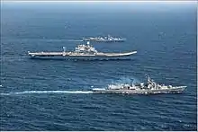 TROPEX 2007 commenced on 30 January 2007 and was conducted in the Arabian Sea.[7][8] The exercise involved fifty ships from the Indian Navy's Western and Eastern Naval Command, including the aircraft carrier INS Viraat, Rajput and Delhi-class destroyers, and Talwar, Brahmaputra and Godavari-class frigates.[7][9] It also involved elements from the Army, Air Force, and the Coast Guard.[7][8] Towards the later stages of the exercise, the navy deployed UAVs, Kamov 31 AEW helicopters, missile defence systems like Barak, Shtil and Kashmir surface-to-air missiles, besides land-attack missiles.[7] During the exercise, participating forces successfully conducted firing of live weapons, including firing of surface-to-air as well as surface-to-surface missiles.[10] In addition, they also tested new operational concepts and learned valuable lessons, which will then be analyzed and used for improving existing operational doctrines.[7][10] "The thrust of this year's edition was to validate the concept of 'Maritime Manoeuvre from the Sea' that is designed to ensure that in a short, swift and intense conflict, the navy is able to directly address and favourably influence the progress and outcome of the air-land battle," said a navy spokesperson.[7]
