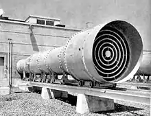 Detuner is a generic term for a jet engine test cell exhaust system muffler.