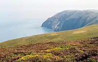 This site lies within the Exmoor National Park, and contains extensive areas of heathland communities. Associated particularly with the coastal communities and woods are a wide range of nationally rare and scarce plants. The site comprises four separate blocks (between Combe Martin and Minehead) centred on Trentishoe, Cosgate Hill, Countisbury and North Hill. There are two nationally rare, endemic whitebeam species which occur in the woodland areas namely Sorbus subcuneata and Sorbus vexans. Several nationally scarce plant species are found within this site; white mullein (Verbascum lychnitis) in its yellow form occurs in fields at the edge of the site, Cornish moneywort (Sibthorpia europaea) beside streams, rock stonecrop (Sedum forsteranum) on rocky seacliffs and sea storksbill (Erodium maritinum), upright chickweed (Moenchia erecta) and bird's-foot clover (Trifolium ornithopodioides) all in areas of very short turf. A nationally rare butterfly the high brown fritillary (Argynnis adippe) occurs on this site.[1]