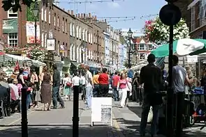 Exmouth Market is a semi-pedestrianised street in Clerkenwell in the London Borough of Islington, and the location of an outdoor street market of 32 stalls.[1]