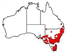 It is common in Victoria, South Australia, Queensland, New South Wales, Tasmania and the Australian Capital Territory[2]