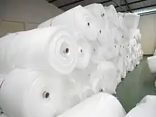 EPE foams are low density, semi-rigid, closed cell foam that are generally somewhere in stiffness/compliance between Expanded polystyrene and Polyurethane. Production of EPE foams is similar to that of expanded polystyrene, but starting with PE beads.[1] Typical densities are 29 to 120 kg/m3 (49 to 202 lb/cu yd) with the lower figure being common.[1] Densities as low as 14 kg/m3 (24 lb/cu yd) can be produced.[2]