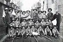 In the mid-1920s, the English engineers who had come to work in the Riotinto Mines gave a very important push for the creation and consolidation of scouting in the Huelva area.[51] The golden age in Minas de Riotinto was under the leadership of Francisco (Frank) Timmis (d. 1931), president of the Local Council, English national and great connoisseur of Baden-Powell's work. In 1924, the Alto Patronato de Exploradores en Minas de Riotinto, under the Schools Department of the Rio Tinto Company Limited, left the organization in the hands of Timmis and in a short time they had about 300 members among the students of the RTCL schools where they learned to march, practiced sports, olympic gymnastics, first aid, and were inculcated with scouting principles.[52] Also in the north, San Sebastián and Bilbao, whose exploradores troops had been active since 1913,[53][54] received help and saw remarkable growth with contributions from Englishmen working in the mines of the Estuary of Bilbao.[51]