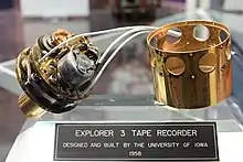 Explorer 3 was launched in conjunction with the International Geophysical Year (IGY) by the U.S. Army (Ordnance) into an eccentric orbit. The objective of this spacecraft was a continuation of experiments started with Explorer 1. The payload consisted of a cosmic ray counter (a Geiger-Müller tube) and a micrometeorite detector (a wire grid array and acoustic detector). The Explorer 3 spacecraft was spin-stabilized and had an on-board tape recorder to provide a complete radiation history for each orbit. It was discovered soon after launch that the satellite was in a tumbling motion with a period of about 7 seconds. Explorer 3 decayed from orbit on 28 June 1958, after 93 days of operation.[1]