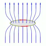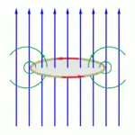 An external magnetic field (blue lines) threads a closed ring made of a perfect conductor (with zero resistance). The total magnetic flux through the ring is equal to the magnetic field multiplied by the area of the surface spanning the ring. The nine field lines represent the magnetic flux threading the ring.