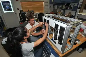 The 80-pound gondola features four doors that rotate to expose up to 10 experimental samples each for 8 hours.[7] To terminate the flight, an explosive charge detonated, tearing a hole in the balloon. E-MIST and other science payloads attached to the balloon's gondola were returned to the surface under a parachute, where waiting researchers recovered the biological samples for analysis.[8] Major payload components were a lithium-ion battery, an ultraviolet (UV) radiometer, humidity and temperatures sensors, and a flight computer.