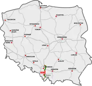 | Pyrzowice (A1) - Mysłowice (A4) - Bielsko-Biała (S52) - Zwardoń - |