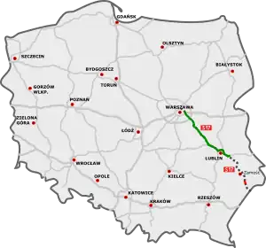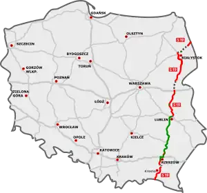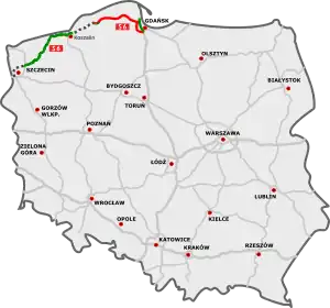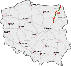 | Gdańsk (A1)[lower-alpha 17] - Elbląg (S22) - Olsztynek (S51) - Warsaw (S8) | ![]() |