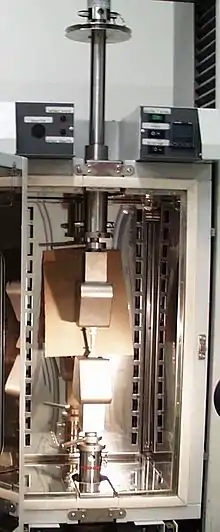 An extensometer is a device that is used to measure changes in the length of an object.[1] It is useful for stress-strain measurements and tensile tests. Its name comes from "extension-meter". It was invented by Charles Huston who described it in an article in the Journal of the Franklin Institute in 1879. Huston later gave the rights to Fairbanks & Ewing, a major manufacturer of testing machines and scales.