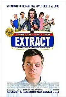 Extract is a 2009 American comedy film written and directed by Mike Judge, and starring an ensemble cast featuring Jason Bateman, Mila Kunis, Kristen Wiig, and Ben Affleck, with J. K. Simmons, Clifton Collins, Jr., and Dustin Milligan.