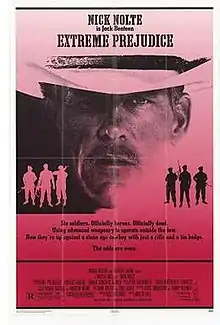 Extreme Prejudice is a 1987 American neo-Western action thriller film[3] starring Nick Nolte and Powers Boothe, with a supporting cast including Michael Ironside, María Conchita Alonso, Rip Torn, William Forsythe, and Clancy Brown. The film was directed by Walter Hill, with a screenplay by Harry Kleiner and Deric Washburn (the latter collaborated with Michael Cimino on Silent Running and The Deer Hunter) from a story by John Milius and Fred Rexer.
