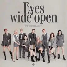 - Jihyun Lee (October 6, 2020). "[gongsig]teuwaiseu 'Eyes wide open' 26il balmae...3nyeon man-e jeong-gyu eumban" 트와이스 'Eyes wide open' 26일 발매...3년 만에 정규 음반 [Twice's 'Eyes wide open' released on the 26th... A regular album in 3 years]. Chosun (in Korean). Archived from the original on June 13, 2021. Retrieved October 12, 2020.