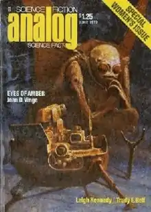 "Eyes of Amber" is a science fiction short story by American writer Joan D. Vinge. It was first published as the cover story for the June 1977 issue of Analog Science Fiction and Fact.