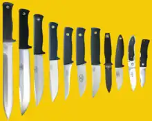 Fällkniven is best known as a supplier of military and outdoor knives, supplying the Swedish military. The Fällkniven model F1 has been the official survival knife for pilots in the Swedish Air Force since 1995.[2] Models F1 and S1 are approved for U.S. Navy and U.S. Marine air crews. Fällkniven also produces outdoors-, hunting- and kitchen knives such as the "Hunting Knife", the "Fällkniven H1".