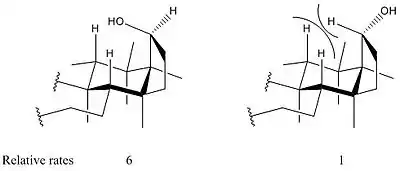 The rate limiting step of this reaction is proposed to be the initial association of the alcohol to the silver ions. As a result, the presence of even weakly associating ligands to the silver can inhibit the reaction greatly. As a result, even slightly polar solvents of any variety, such as ethyl acetate or methyl ethyl ketone, are avoided when using this reagent as they competitively associate with the reagent.[5] Additional polar functionalities of the reactant should also be avoided whenever possible as even the presence of an alkene can sometimes reduce the reactivity of a substrate 50 fold.[6] Commonly employed solvents such as benzene and xylene are extremely non-polar and further acceleration of the reaction can be achieved through the use of the more non-polar heptane.[6] The solvent is also typically refluxed to drive the reaction with heat and remove the water generated by the reaction through azeotropic distillation. Steric hindrance of the hydrogen alpha to the alcohol is a major determination of the rate of oxidation as it effects the rate of association.[5] Tertiary alcohols lacking an alpha hydrogen are selected against and generally do not oxidize in the presence of Fétizon's reagent.[7]