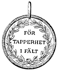 För tapperhet i fält ("For Valour in the Field") and För tapperhet till sjöss ("For Valour at Sea") are two Swedish military medals awarded to officers and soldiers of the Swedish Armed Forces who have—as the medal names suggest—shown valour in the field or at sea in wartime. These two medals, along with the various grades of the Order of the Sword, are the only awards in Sweden that have the designation "Swedish war decorations" (Svenska krigsdekorationer).[2] The medal was instituted by Gustav III on 28 May 1789, during his war against Russia and was meant to complement the Order of the Sword—which was instituted on 23 February 1748 and was awarded for the same purpose—valour in the field or at sea—but only to officers.