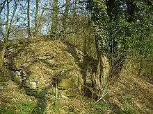 - b) Richters Köpfchen, lower down, a small medieval stone castle.