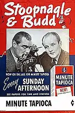 Stoopnagle and Budd were a popular radio comedy team of the 1930s, who are sometimes cited as forerunners of the Bob and Ray style of radio comedy. Along with Raymond Knight (The Cuckoo Hour), they were radio's first satirists.