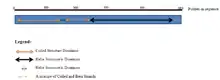 There are several tools available to predict the secondary structure of a protein. One tool that combines the results of few of them is PELE on SDSC Biology WorkBench.[9] According to this tool, the protein's secondary structure is mostly alpha helices and coils with some beta strands around the structure.