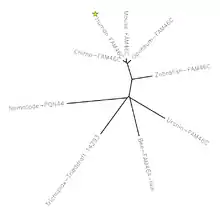 Based on multiple sequence alignments generated by ClustalW an unrooted phylogenetic tree was generated for select FAM46C orthologs in order to demonstrate the diverse occurrences of FAM46C-like genes throughout the current evolutionary catalog. For posterity, many orthologs were omitted (see ortholog table above; many were omitted from this table as well).
