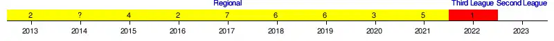 | Green marks a season followed by promotion, red a season followed by relegation. | |||||||||||