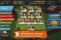 - Play – There are three types of leagues to play: Pro League, National Leagues and Social League. In Pro League, there are Premier League, La Liga, Football League Championship, Serie A, Major League Soccer and Bundesliga (added on 22 March). In National League, there are Premier League, Ligue 1, Serie A and Liga BBVA. In Social League, there are Friends Super League, Superstars League and Friendly Matches. The lowest class of the Superstars league is Tutorial League, which will randomly choose from the South African teams. After winning a match, players are promoted to the next league—Juniors C League and up to Superstars Champions A League. The Superstars League allows players to play against opponents that are not their "friends". After winning, statistics are posted on the Leaderboard. Receiving votes of support unlock the next match. Score points to claim the rewards and claim rewards in five matches (in the Championship, the gift is claimed after six matches due to total of 48 matches). All leagues need the ticket called Match Credits. Players earn match credits by winning friendly matches, completing the league, waiting for countdown clock, asking friends for credits, taking the shootout practice and buying from the store.
