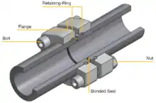 The sealing of the Parflange F37 retaining ring connection is done by a bonded seal on the face side of the pipe end or alternatively by a pipe seal carrier ("PSC"). The pipe seal carrier has soft seales (o-rings or F37-Seals) on both sides. On one side, the pipe seal carrier has a centering aid to improve assembly.
