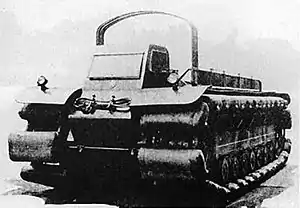 The F B swamp vehicle was a military transport/personnel carrier of the Imperial Japanese Army (IJA), which was developed and used for crossing swampy terrain.[1] It was part of the effort by the army to mechanize their forces and its "cross-country capabilities".[1] The F B was first produced in 1935, with 146 units being built.[2] The F B had a two-to-three-man crew. The vehicle had eight road wheels per side, with rubber floats attached to the track links in order to prevent the vehicle from sinking into the quagmire. The F B could also be used to transport men across water ways, powered by a drive propeller shaft.[1][2]